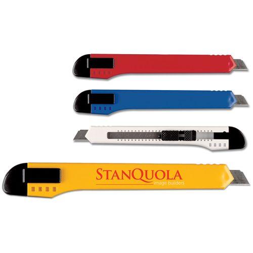 Hobby knife with twelve snap-off blades. Clip attachment. Delivery lead time : 5 days, unprinted.