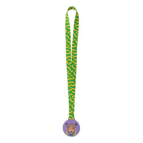 Custom made, brushed aluminium composite medal with full colour graphics. On sublimation printed RPET lanyard. Price includes sublimation and UV LED printing. MOQ: 100 pcs.