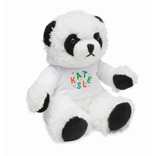 Panda bear plush wearing a hooded sweater. Ideal for sublimation print.